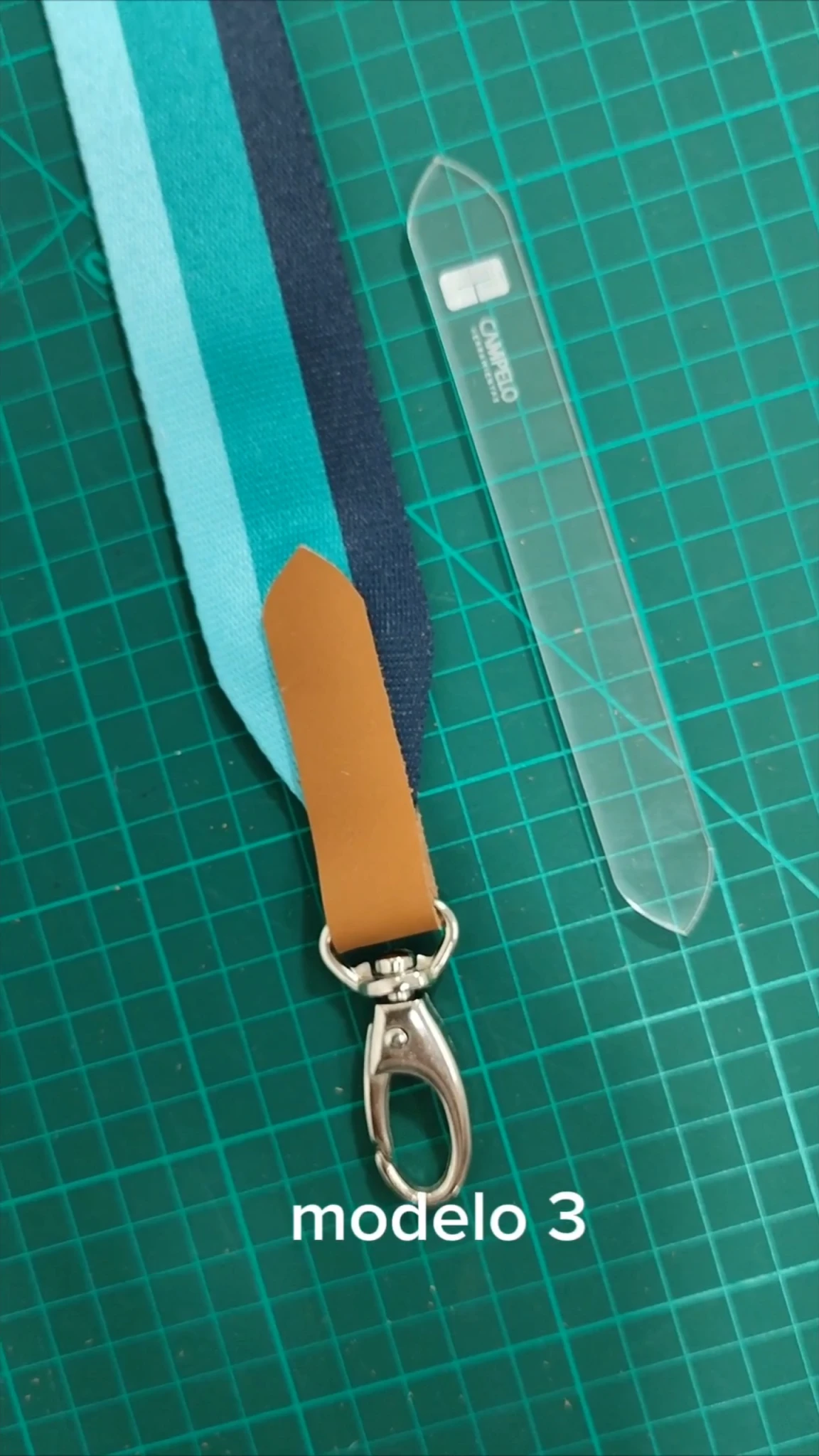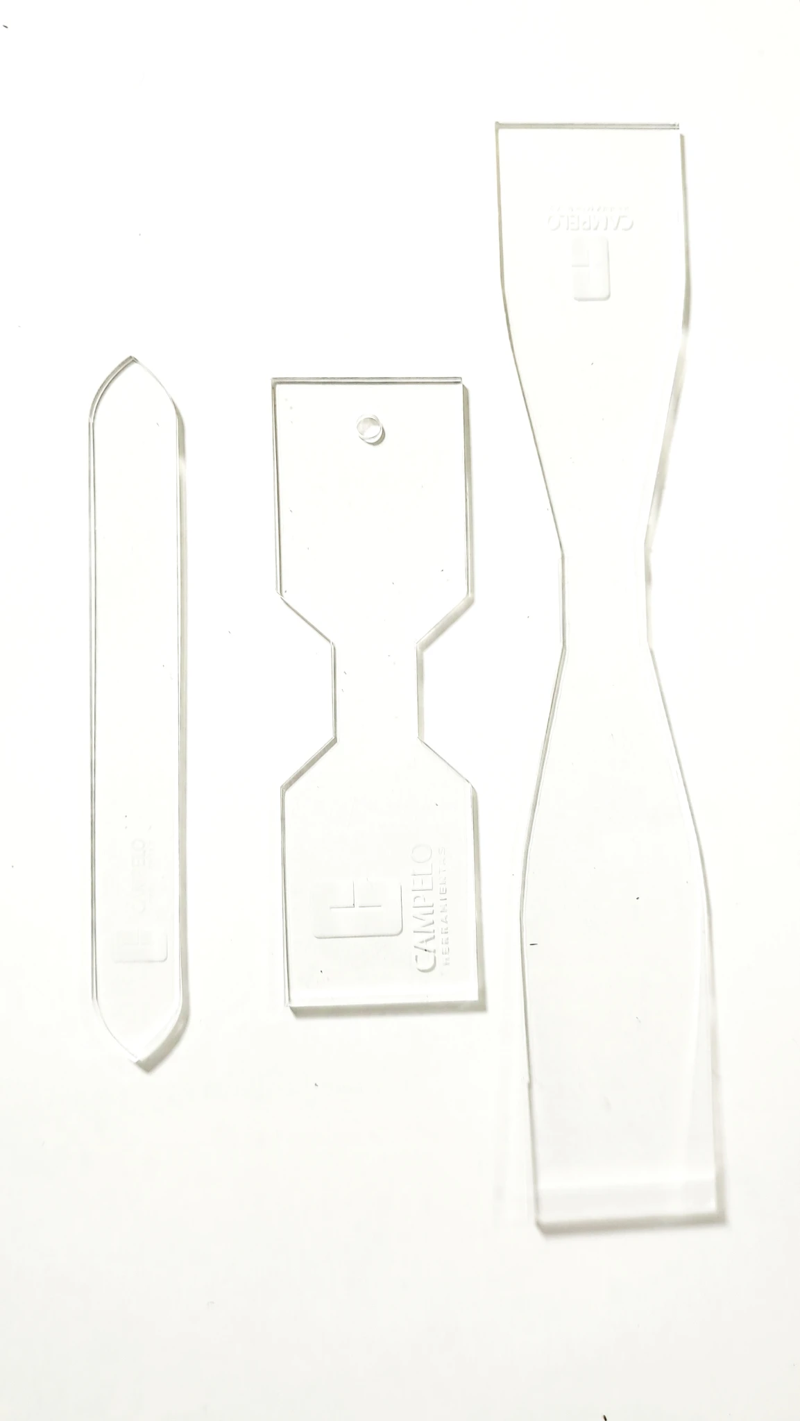 Realizadas en acrilico transparente de 3mm nos ofrecen tres formas de treminar una correa de cintas