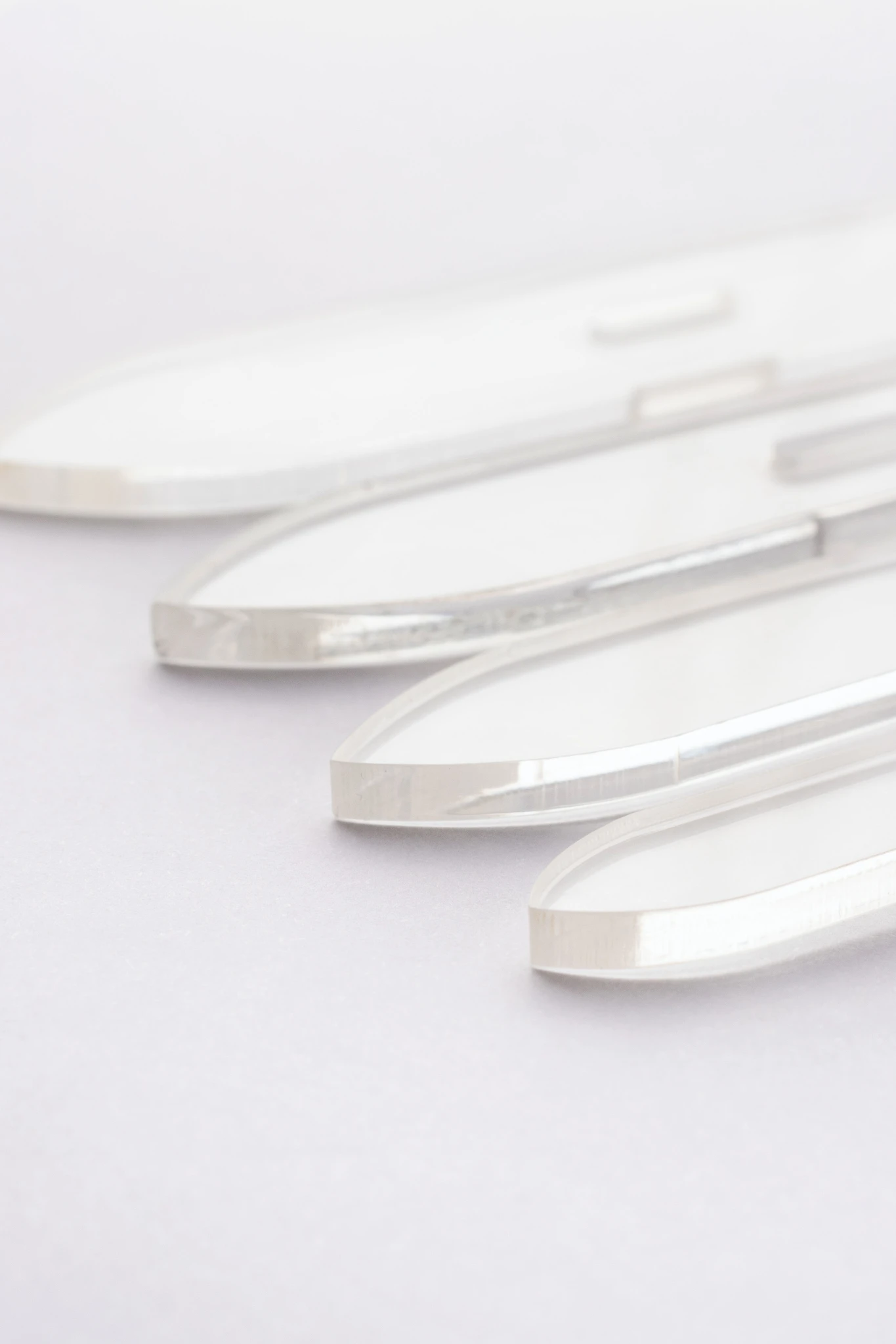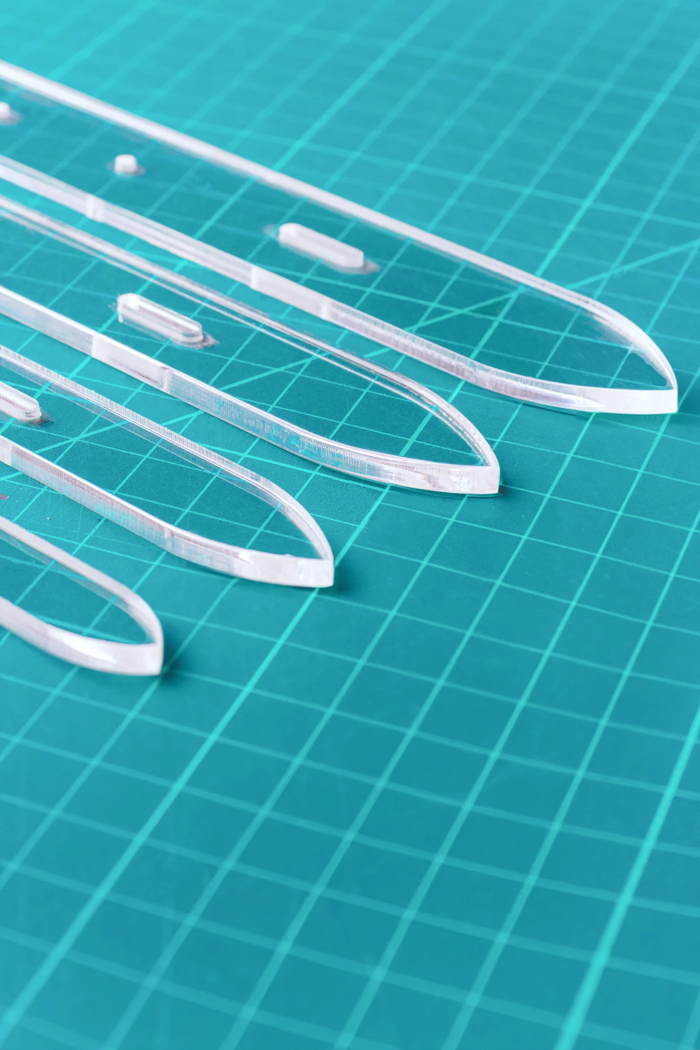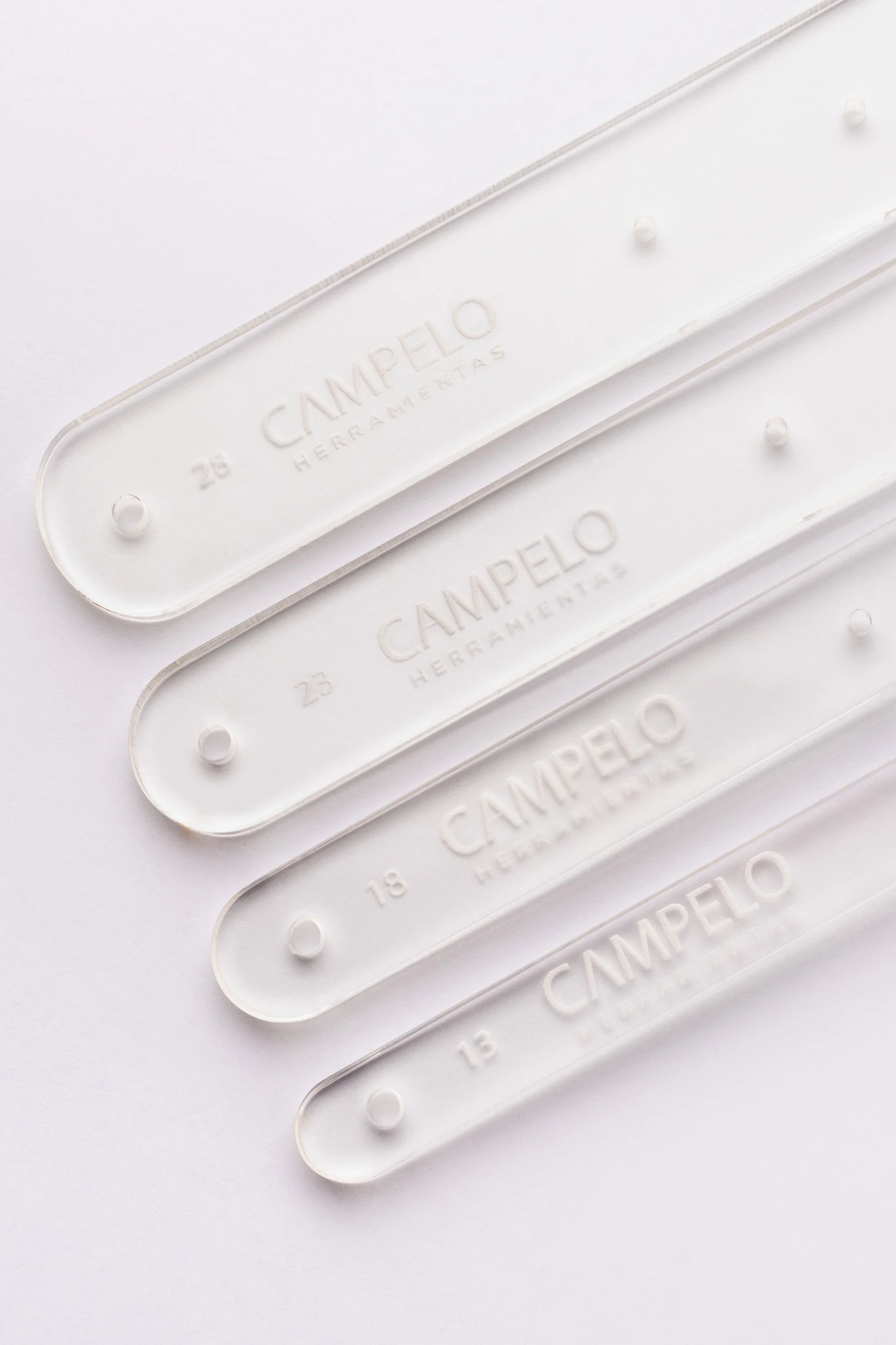 Este conjunto de cuatro reglas, fabricadas en acrílico transparente de 4 mm, son ideales tanto para dibujo como para corte.